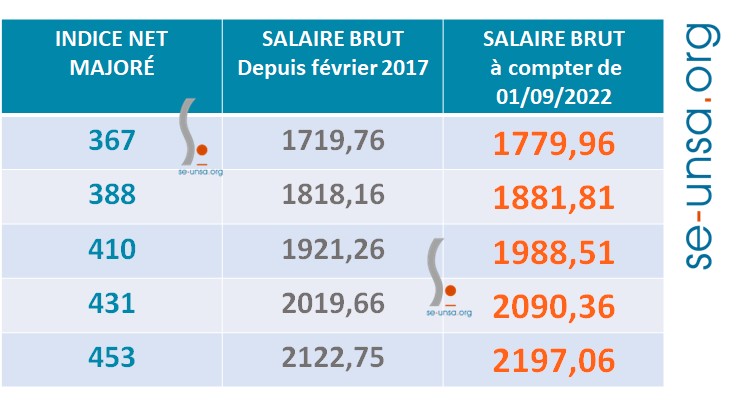 Par ailleurs, le montant de nombreuses indemnités comme le SFT ou l'indemnité de résidence est calculé sur la base du traitement indiciaire (de votre salaire brut). Ces augmentations se rajouteront donc à la réévalutation du montant brut de votre rémunération.