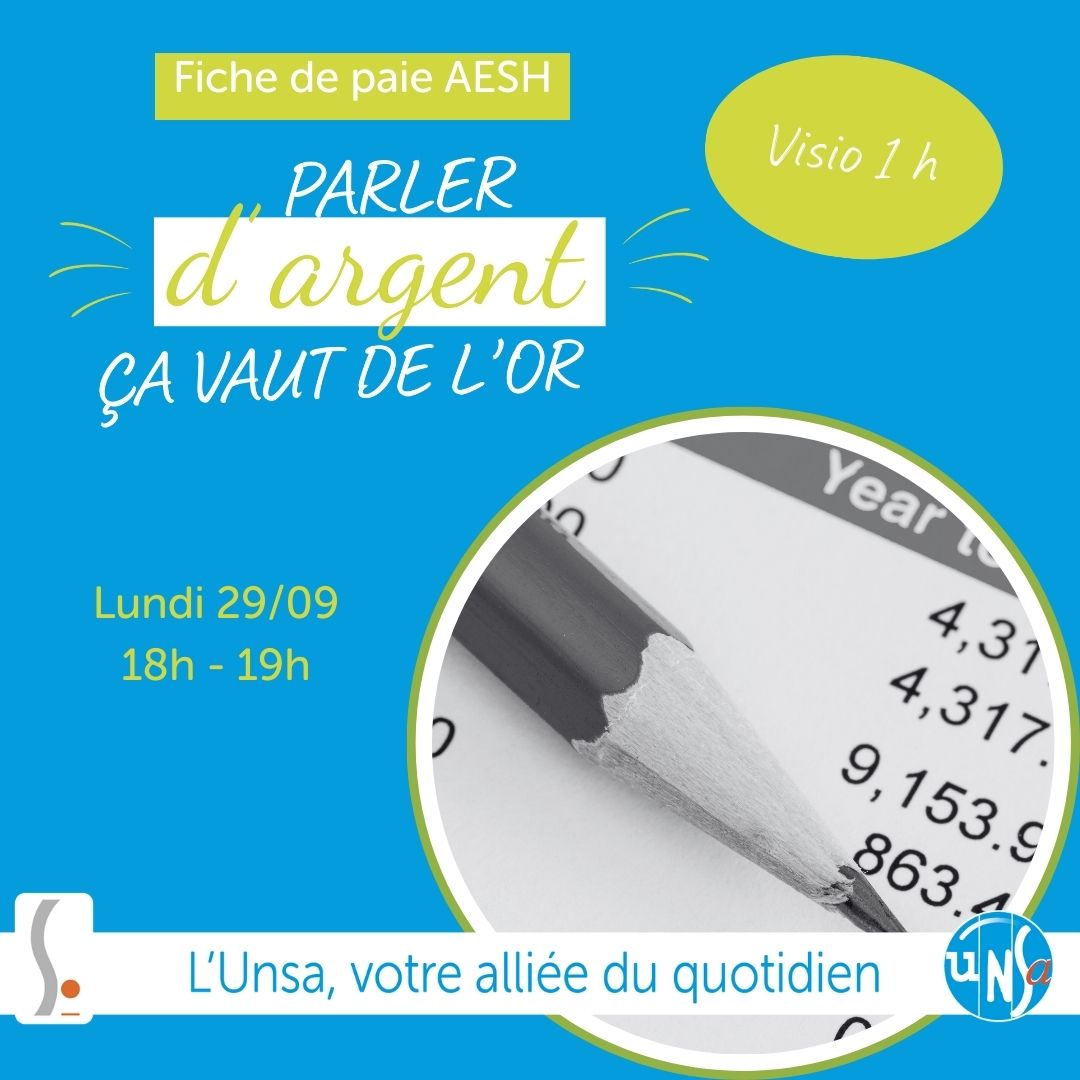 Visio "Fiche de paie AESH" Votre fiche de paie n'aura plus de secrets pour vous! Le SE-UNSA est lĂ pour vous informer en 1h chrono ! Date : lundi 29/09/2025 Lieu : Visio Horaires : 18h - 19h |